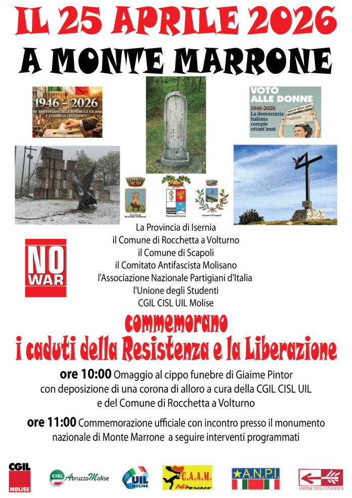La CGIL Molise ha organizzato, per il periodo che comprende il 25 aprile e il 1 maggio, una serie di eventi raccolti sotto il consolidato marchio di “Primavera dei diritti”. La CGIL Molise celebrerà l’ anniversario della Liberazione dal nazifascismo salendo, come da tradizione del 25 aprile, sul Monte Marrone, uno dei luoghi simbolo della resistenza molisana e del sacrificio per la libertà. Per la CGIL quest’anno la commemorazione assume un significato ancora più profondo, coincidendo con l’ottantesimo anno di eventi determinanti per la storia del nostro Paese e non solo: il passaggio ufficiale dal fascismo alla democrazia e la conquista del suffragio universale con il voto alle donne. “ Questi sono elementi che si legano indissolubilmente con la difesa dei valori costituzionali e con la lotta, purtroppo ancora necessaria, per il riconoscimento di un lavoro sicuro, dignitoso e contrattualmente giusto” commenta il Segretario Generale della CGIL Molise Paolo De Socio. “ Monte Marrone non è solo memoria, – continua De Socio – ma in un mondo pervaso dai soprusi e dalle guerre che cancellano i pilastri democratici e diplomatici affermati dopo le sciagure belliche del secolo scorso, eventi come quello del 25 aprile molisano rappresentano un monito attuale: la LIBERTA’ conquistata dai partigiani e dagli alleati si fonda su valori solidi come l’antifascismo, pilastro della nostra Repubblica, sulla solidarietà e sulla PACE . Valori, questi, che devono sempre essere coltivati. “ La CGIL Molise, insieme all’ANPI e alle associazioni antifasciste, ribadisce la necessità di contrastare ogni forma di revisionismo e di impegnarsi quotidianamente per la piena attuazione della Costituzione. Nel ricordo di chi ha dato la vita per un futuro di pace, la CGIL rilancia l’appello per una “primavera dei diritti”, mettendo al centro la dignità e la sicurezza del lavoro, la lotta alla precarietà e l’esigibilità dei diritti costituzionali per dare senso compiuto ai dettami della nostra carta fondante scritta anche con il sacrificio e con il sangue di tante lavoratrici e lavoratori. Di seguito alcuni degli appuntamenti previsti per i prossimi giorni: