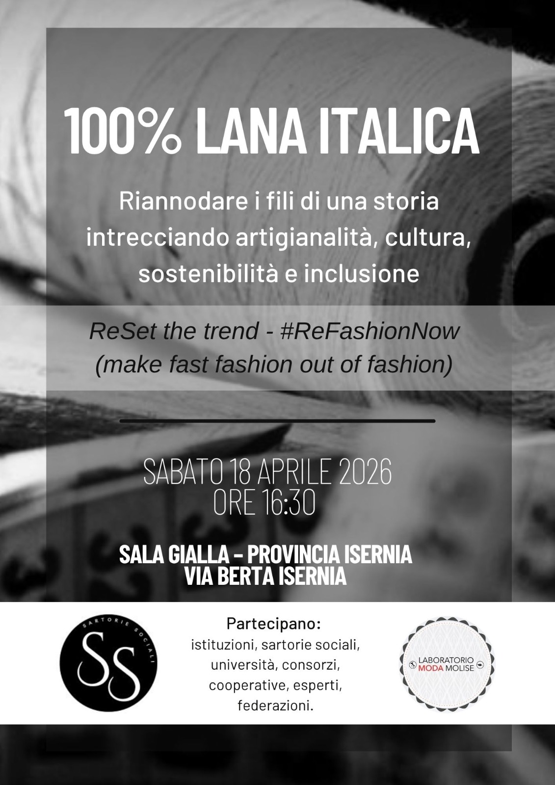 Il 7 febbraio 2026, a Termoli, è stato presentato il progetto “100% Lana Italica”, un’iniziativa che punta a trasformare un problema ambientale in un’opportunità per lo sviluppo locale. Ogni anno, infatti, circa 8.700 tonnellate di lana proveniente dalla tosatura degli allevamenti finiscono tra rifiuti, dispersione o combustione, con gravi conseguenze per l’ambiente. Eppure, secondo studi dell’ISPRA, da questa materia oggi scartata si potrebbero ottenere fino a 15 milioni di metri quadrati di tessuto, dando vita a una filiera sostenibile e innovativa. Il progetto nasce con un duplice obiettivo: offrire agli allevatori una soluzione concreta per lo smaltimento della lana e, al tempo stesso, rilanciare il suo utilizzo in ambiti come la moda e gli accessori. Non si tratta solo di economia circolare, ma anche di recupero culturale: la lana è infatti simbolo della transumanza, riconosciuta dall’UNESCO come patrimonio immateriale dell’umanità, e richiama la storia del Sannio e della Lega Italica, che già nel 91 a.C. coniò monete con il nome “Italia”. Il percorso progettuale si articola in tre aree. La prima prevede la creazione di un centro di lavaggio della lana, cuore di un modello locale replicabile altrove e base per una microfiliera tessile sostenibile. La seconda riguarda un laboratorio creativo e manifatturiero, dove nasceranno linee di prodotti ispirate alla sostenibilità, con materiali naturali e colorazioni non invasive, accompagnate da una “tracciabilità narrativa” che racconti storie, mani e territori. La terza area trasformerà il laboratorio in uno spazio di narrazione e sensibilizzazione, in linea con le iniziative europee contro il fast fashion, promuovendo un modello più etico e duraturo. In questo contesto, un ruolo centrale è affidato alle Sartorie Sociali, realtà capaci di coniugare produzione, inclusione e recupero di competenze locali, generando occupazione e coesione sociale. Il prossimo 18 aprile a partire dalle ore 16,30 a Isernia, presso la Sala Gialla della Provincia, si terrà un incontro dal titolo “100% Lana Italica – riannodare i fili di una storia”, con l’obiettivo di coinvolgere attivamente i partner e le sartorie nella fase operativa del progetto, passando dal “cosa fare” al “come farlo”. Un momento di confronto per costruire reti, condividere competenze e dare concretezza a un’iniziativa che affonda le radici nel progetto “Laboratorio moda Molise”, avviato nel 2015. In un tempo segnato dalla crisi del manifatturiero e dalla perdita di migliaia di imprese, “100% Lana Italica” si propone come un segnale di rinascita: un invito a riannodare i fili tra tradizione e innovazione, tra memoria e futuro. Un progetto che guarda avanti, con la consapevolezza che sostenibilità, identità e comunità possono ancora tessere insieme nuove trame di sviluppo. L’incontro, promosso dalla “rete” tra le Sartorie Sociali, nasce con l’obiettivo di stimolare, all’interno del percorso progettuale illustrato nell’incontro di Termoli, una “partecipazione progettuale” delle Sartorie Sociali coinvolte nella “rete” e dei diversi partner coinvolti nel progetto o interessati allo stesso, in una fase in cui si delineano, nei modi e nei tempi, l’attivazione a Macchia d’Isernia, del “Centro lavaggio” per la lana e del “laboratorio creativo e manifatturiero”. Una fase in cui si passa dal “cosa fare” al “come farlo” puntando alla costruzione di “reti” di competenze per lo sviluppo delle diverse attività. Un percorso progettuale che riannoda i fili di una storia avviata, nel 2015 con il progetto “Laboratorio moda Molise” promosso dalla Provincia di Isernia. Un percorso progettuale che ha animato la costituzione della prima “rete” nazionale tra le Sartorie Sociali che, in questo scenario critico, possono rappresentare un’opportunità concreta e rigenerativa in quanto propongono un nuovo paradigma per il settore moda incentrato sulla produzione di capi durevoli (Slow fashion), (ri)utilizzano tessuti naturali, recuperano competenze locali, generano occupazione e coesione sociale. La firma a Roma (maggio 2025), presso la Sala Stampa della Camera dei Deputati, del manifesto Slow fashion Italy, promosso dalla “rete” tra le Sartorie Sociali e sottoscritto nei giorni seguenti da oltre 150 Parlamentari, conferma l’importanza del percorso intrapreso. La scelta della sede dell’incontro non è casuale. La “Sala Gialla” della Provincia di Isernia è stato il “luogo” nel quale si sono svolti tanti incontri collegati al protocollo d’intesa sottoscritto con la Provincia di Isernia avente per oggetto il microcredito e lo sviluppo locale. La partecipazione è libera. Partecipazioni importanti animeranno la giornata con dibattiti e ulteriori proposte. Oltre la presenza del Sindaco di Isernia Piero Castrataro e del presidente della Provincia di Isernia Daniele Saia, interverranno rappresentanti della politica regionali quali Gianluca Cefaratti, Stefania Passarelli, Roberto Di Baggio, Roberto Di Pardo, i rappresentanti del Parco del Matese nelle persone di Andrea Boggia e Mimmo Izzi, Riccardo Terriaca in qualità di presidente di Confcooperative Molise, Rossana Gaddi ( Coord. Scientifico dell’Osservatorio Nazionale FILA – filiera produzione lane autoctone – Dipartimento Architettura Università G. D’Annunzio di Chieti) Dario Casalini ( Pres. Slow Fiber), Francesco Di Nisio (v.s. Corfinio), Gianfranco Paolucci (pres. Anci Molise), Valeria Ferra (dirigente C.P.I.A. “Maestro A. Manzi”), Barbara Annunziata (Action Women Sartoria Sociale), Maria Pia Riccardi (coop. I Care Sartoria Sociale), Viola e Nunzio Marcelli (Pastori -coop. Asca), Claudio Papa (pres. Coldiretti Molise), Romolo D’Orazio (pres. Confartigianato Molise) Giorgio Gagliardi (pres. aps Arci Francesco Jovine), Vincenzo Cimino ( Pres. Ordine Giornalisti del Molise), Sebastiano Delfine (Unimol), Peppe Notartomaso 