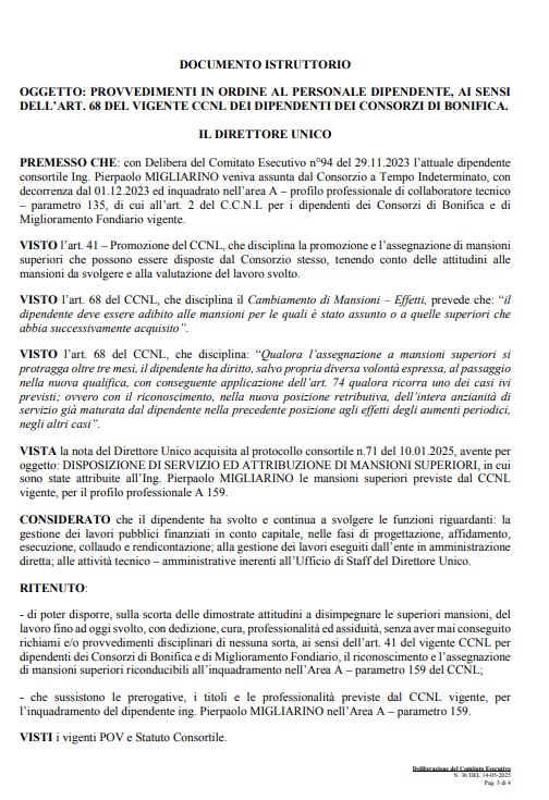 Tuttavia l’opportunita’, prima dell’assunzione e ora dell’avanzamento di carriera alla luce degli stretti rapporti di parentela con una personalità istituzionale, richiede una riflessione profonda. È fondamentale che le istituzioni ripristinino la fiducia dei cittadini attraverso procedimenti di assunzione che garantiscano a tutti le stesse opportunità valorizzando così merito e competenze rispetto alle relazioni personali. Solo così si potrà costruire un futuro migliore per il Consorzio di Bonifica, per i suoi dipendenti, per noi tutti.