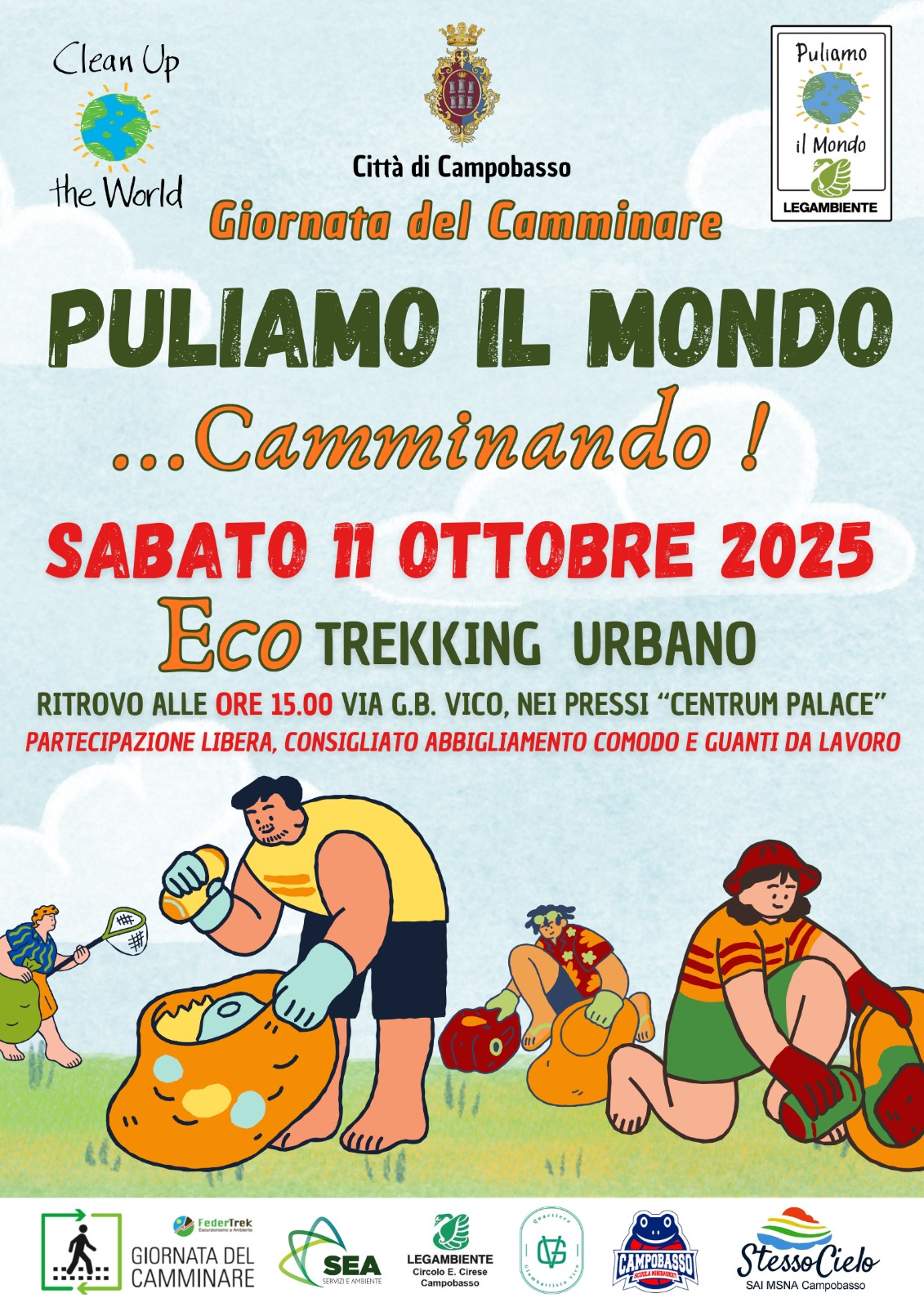 Sabato 11 ottobre, dalle ore 15.00, si svolgerà un trekking ecologico in concomitanza con la storica manifestazione Puliamo il Mondo promossa da Legambiente. Il percorso interesserà la zona di via De Sanctis e via G.B. Vico, con la partecipazione dell’associazione di quartiere G.B. Vico, del CAS Stesso Cielo, della scuola Minibasket Campobasso e con il supporto della SEA. Un’occasione per prendersi cura del territorio in modo attivo e condiviso.