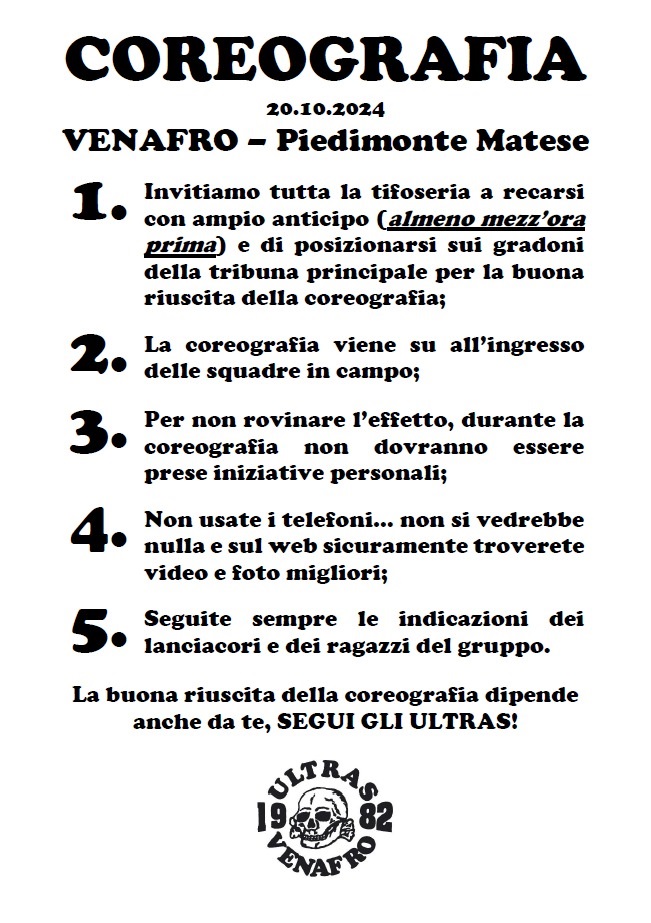 Lo stadio “Marchese Del Prete” sarà una bolgia e l’atmosfera si preannuncia infuocata. La città è pronta, il Venafro è pronto: non resta che aspettare il fischio d’inizio per vivere una domenica da brividi.