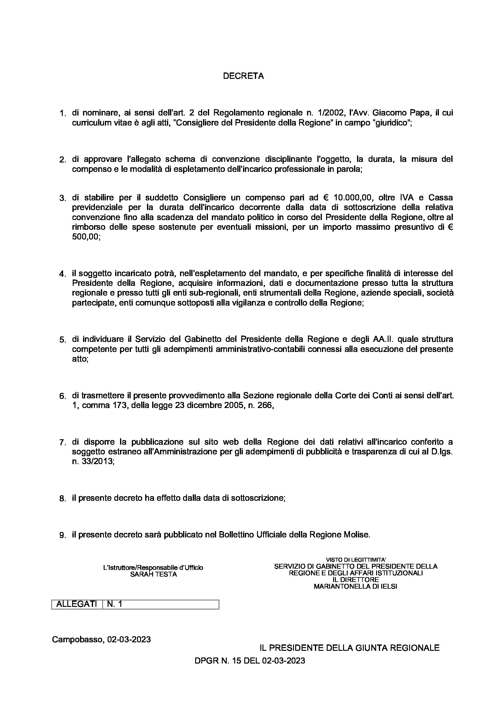 Home Attualità Morto un Papa se ne fa un altro AttualitàPoliticaPolitici Molisani Morto un Papa se ne fa un altro Da Redazione - 3 Marzo 2023 915 L’ex sub commissario alla sanità Giacomo Papa, dopo le dimissioni dalla struttura commissariale per volontà del governo nazionale, è stato rinominato consigliere giuridico di Toma per un compenso di 10mila euro fino a fine legislatura. Articoli correlatiAltri articoli dallo stesso autore Violenza di genere, dal Molise un appello al Parlamento: “Allineare la norma agli standard europei” Tradizione e creatività: a Roccaravindola il palio dei carri del ‘Carnevale Ravindolese’ Progetto di valorizzazione urbana: fondi stanziati per Civitacampomarano e Montemitro
