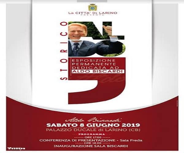 Con il patrocinio del Comune di Larino, il prossimo 8 giugno alle ore 17 sarà inaugurata la mostra permanente dedicata ad Aldo Biscardi, intitolata “Storico Aldo”, una raccolta di cimeli e riconoscimenti che celebrano la figura pubblica del grande giornalista sportivo, dall’unico e prestigioso “Guinness dei Primati” ai Telegatti.