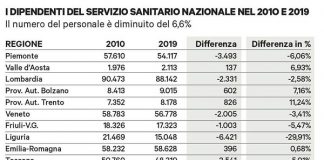 SANITÀ, TAGLI AL PERSONALE PARI AL 25%. PEGGIO DEL MOLISE SOLO LA LIGURIA